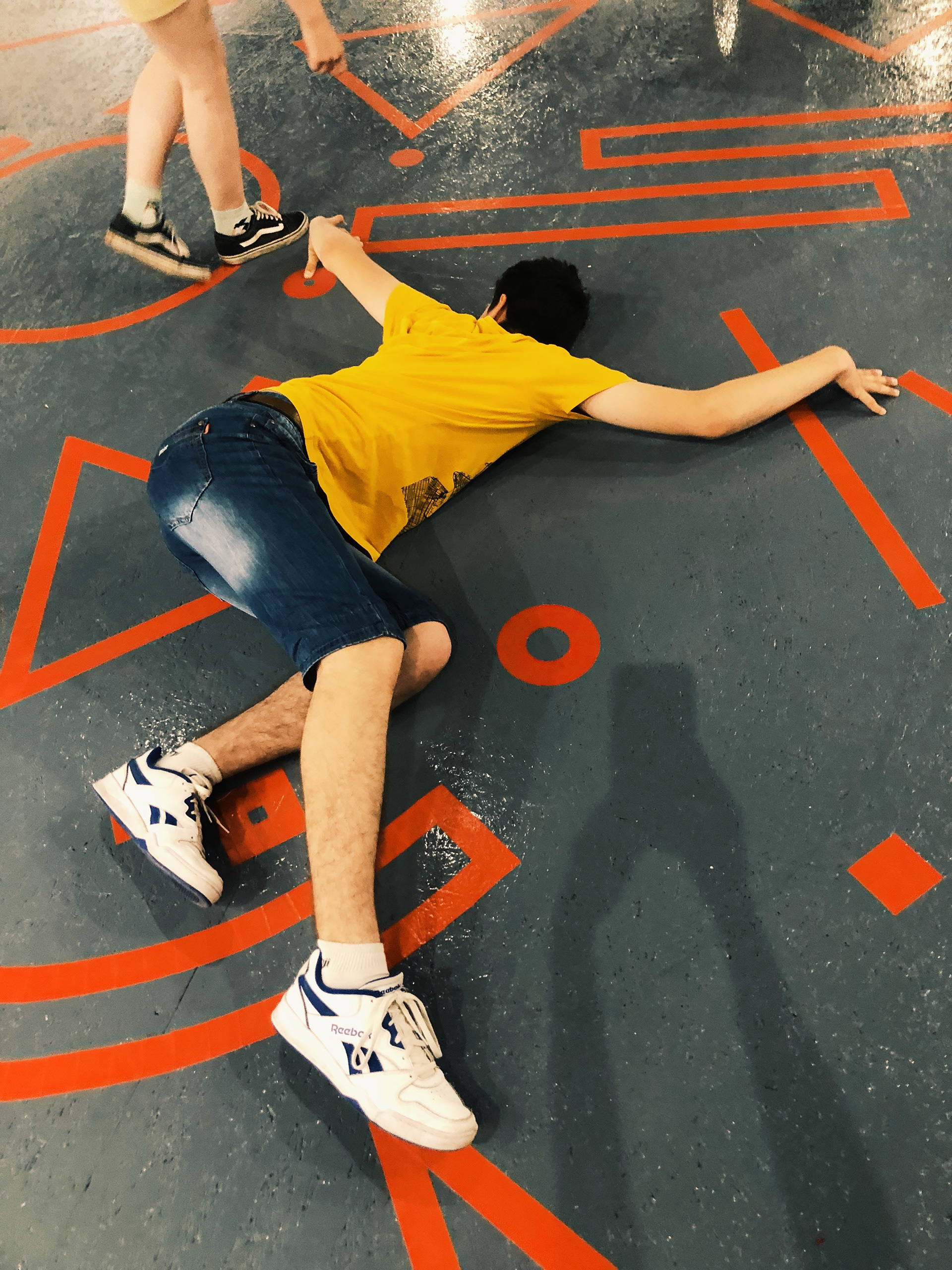 - adună cât mai multe obiecte de pe jos atingându-le și menținând contactul